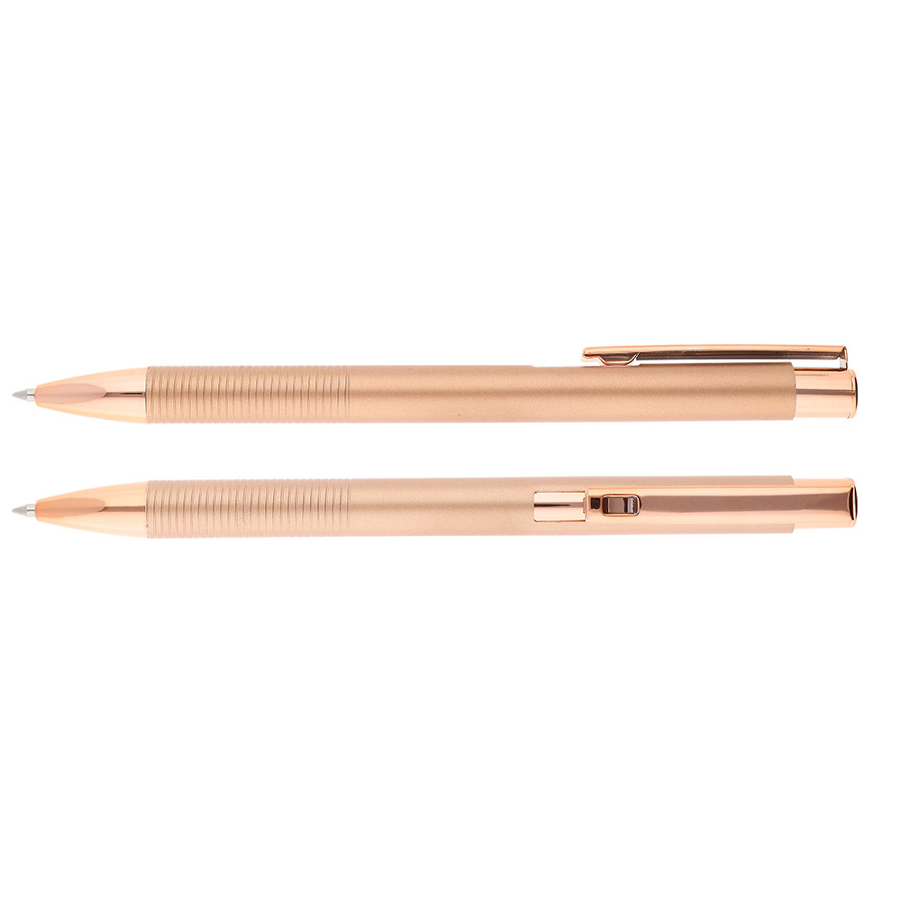 Kovové guličkové pero s modrou náplňou v lesklých farebných odtieňoch.
