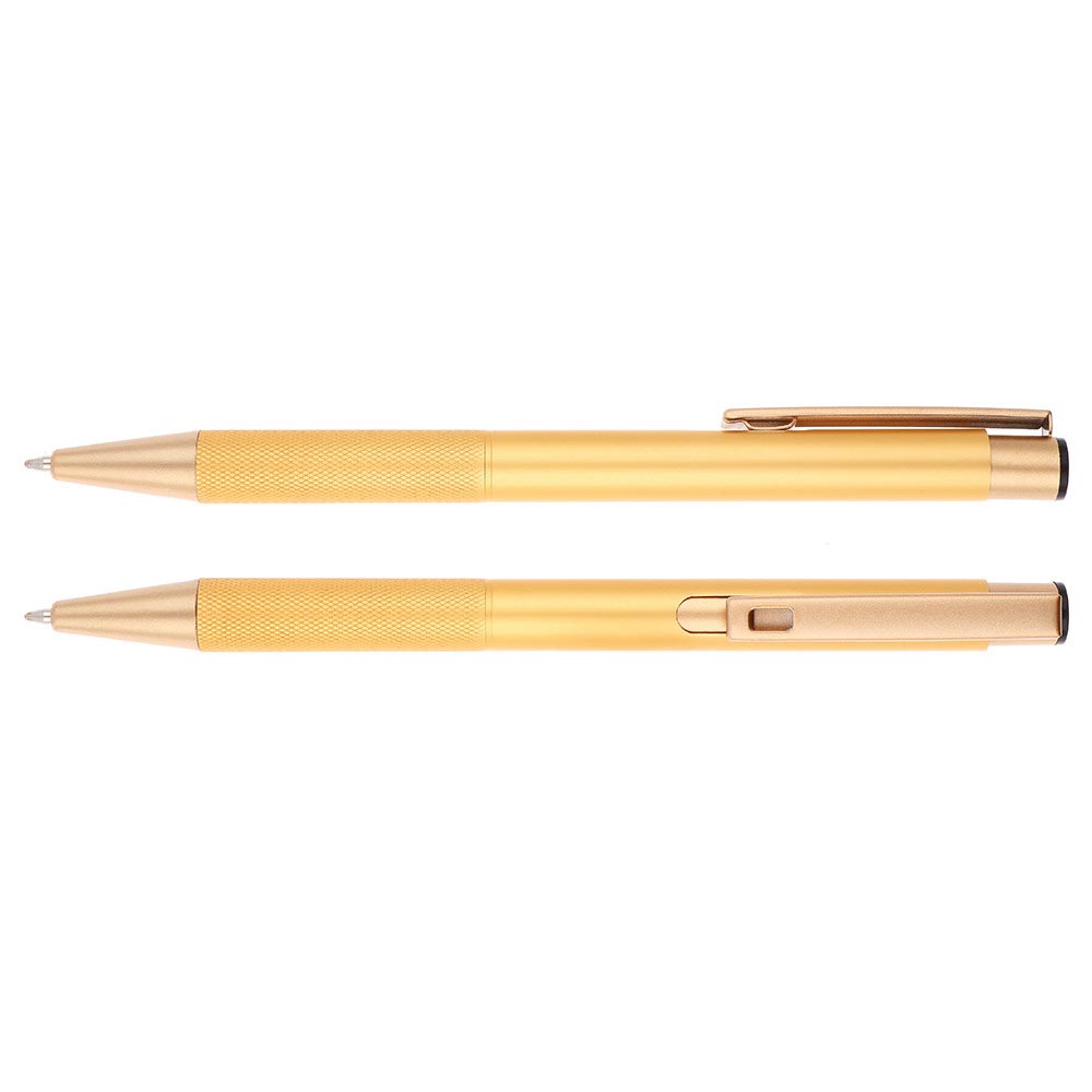 Luxusní kovové stiskací kuličkové pero s modrou náplní.
