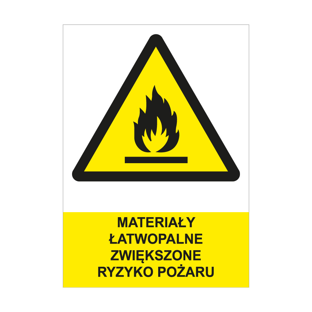 MATERIAŁY ŁATWOPALNE ZWIĘKSZONE RYZYKO POŻARU - znak BHP, płyta PVC A4, 0,5 mm