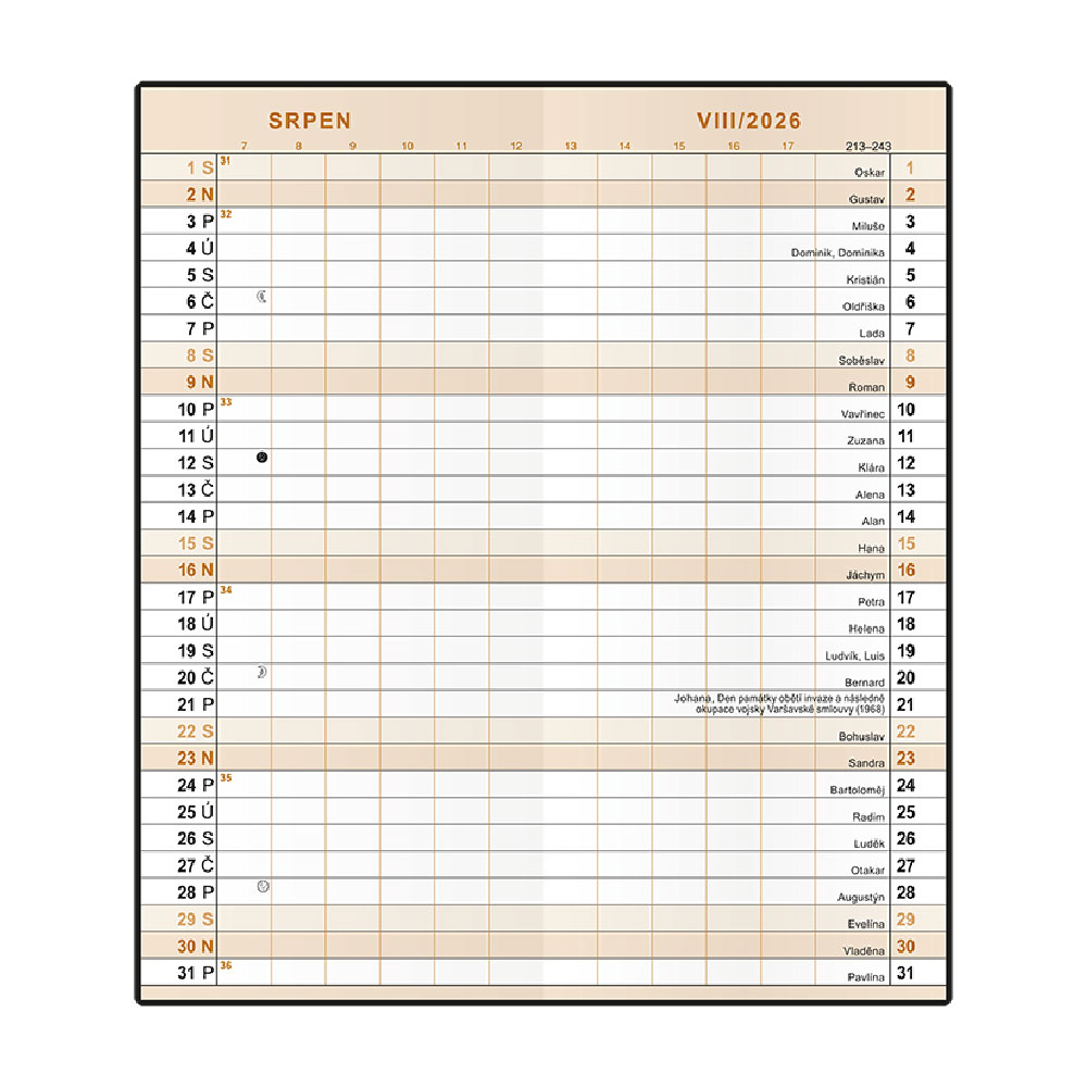 Kalendárium obsahuje: