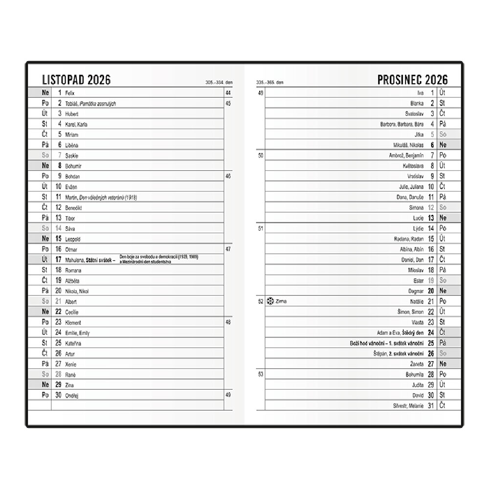 Kalendárium obsahuje:
