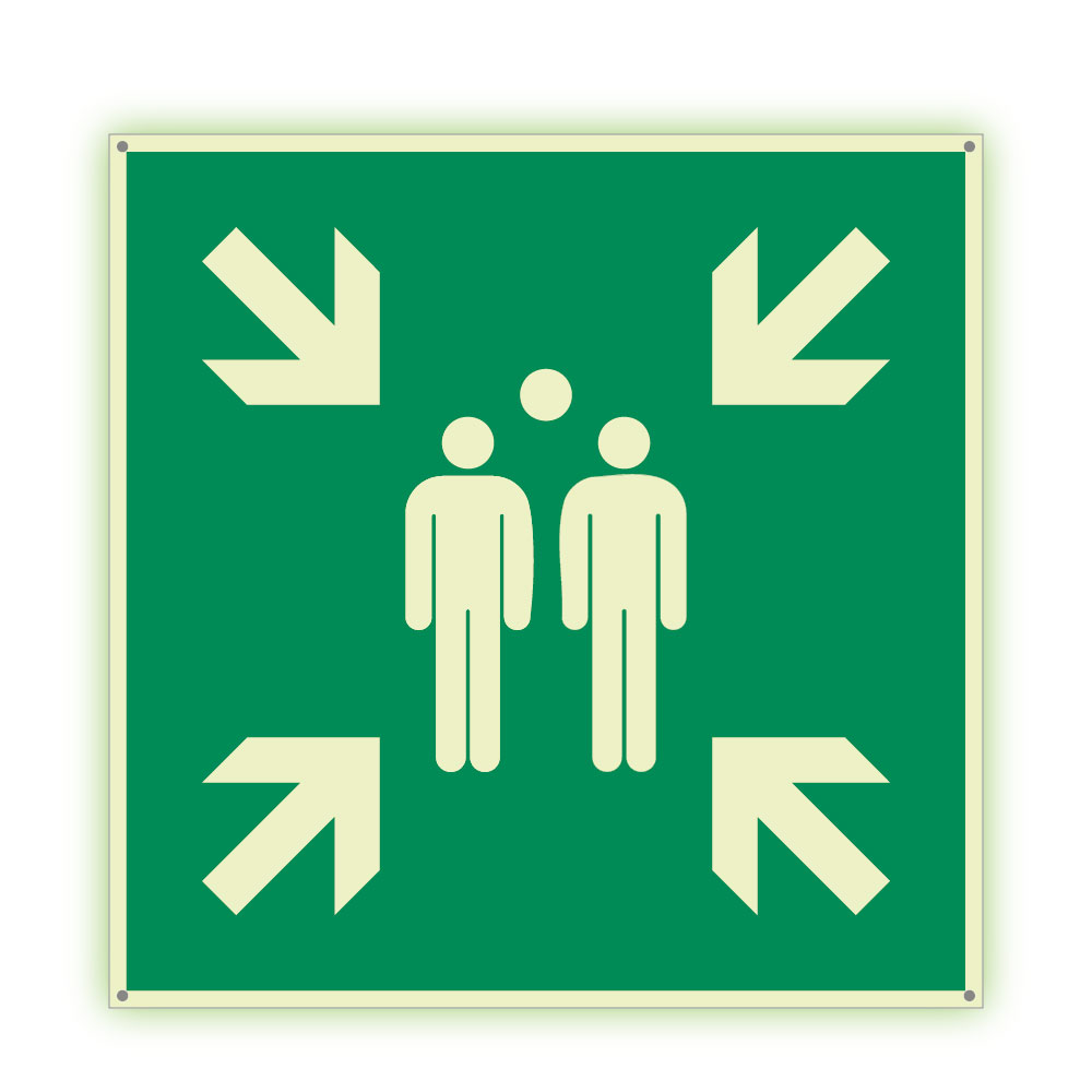 Miejsce zbiórki do ewakuacji - fotoluminescencyjny znak, płyta PVC 1 mm 300x300 mm