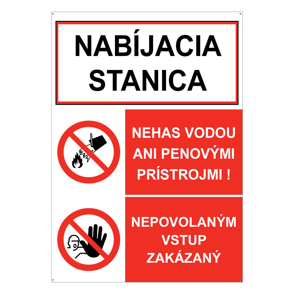 Nabíjacia stanica-Nehas vodou-Nepovolaným vstup zakázaný, kombinácia,plast 2mm,148x210mm