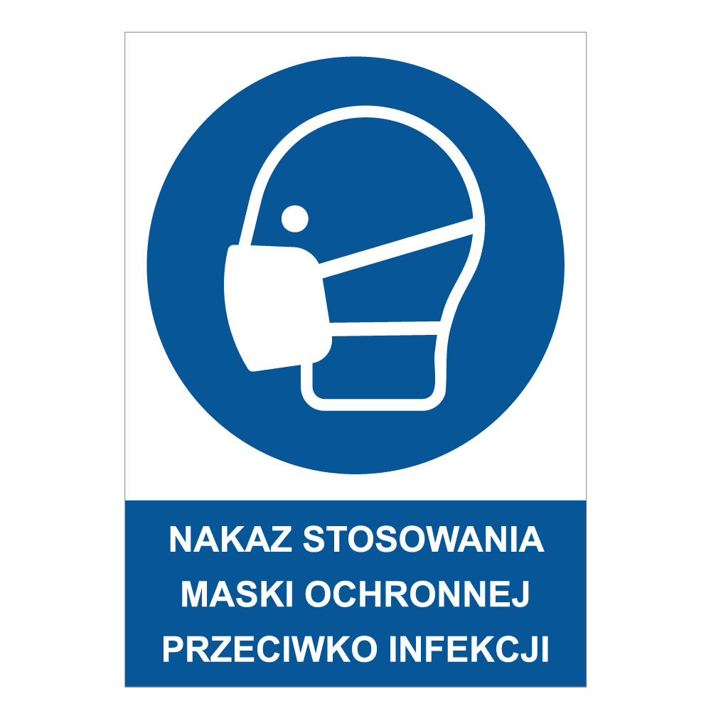 NAKAZ STOSOWANIA MASKI OCHRONNEJ PRZECIWKO INFEKCJI - znak BHP, 2 mm płyta PVC A4