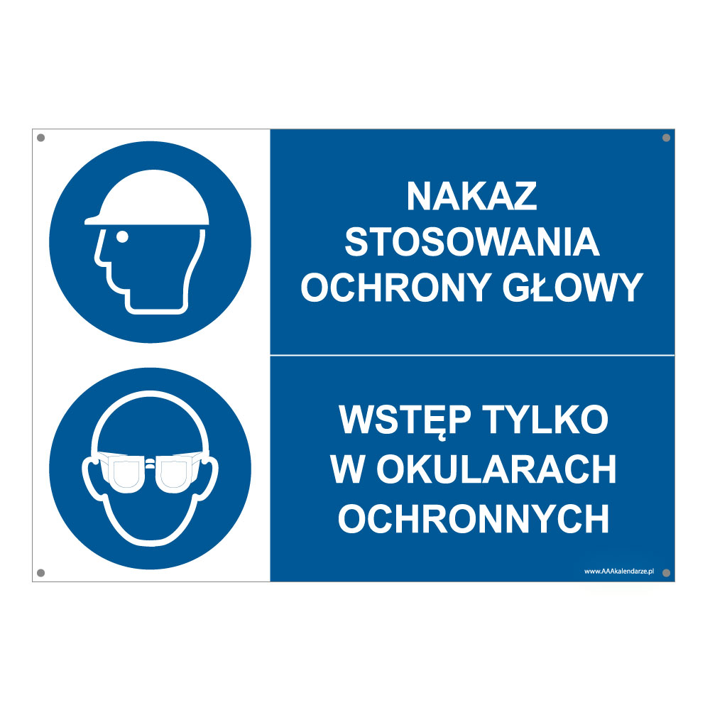 NAKAZ STOSOWANIA OCHRONY GŁOWY - WSTĘP TYLKO W OKULARACH..., ZNAK ŁĄCZONY, płyta PVC 2 mm, 297x210 mm