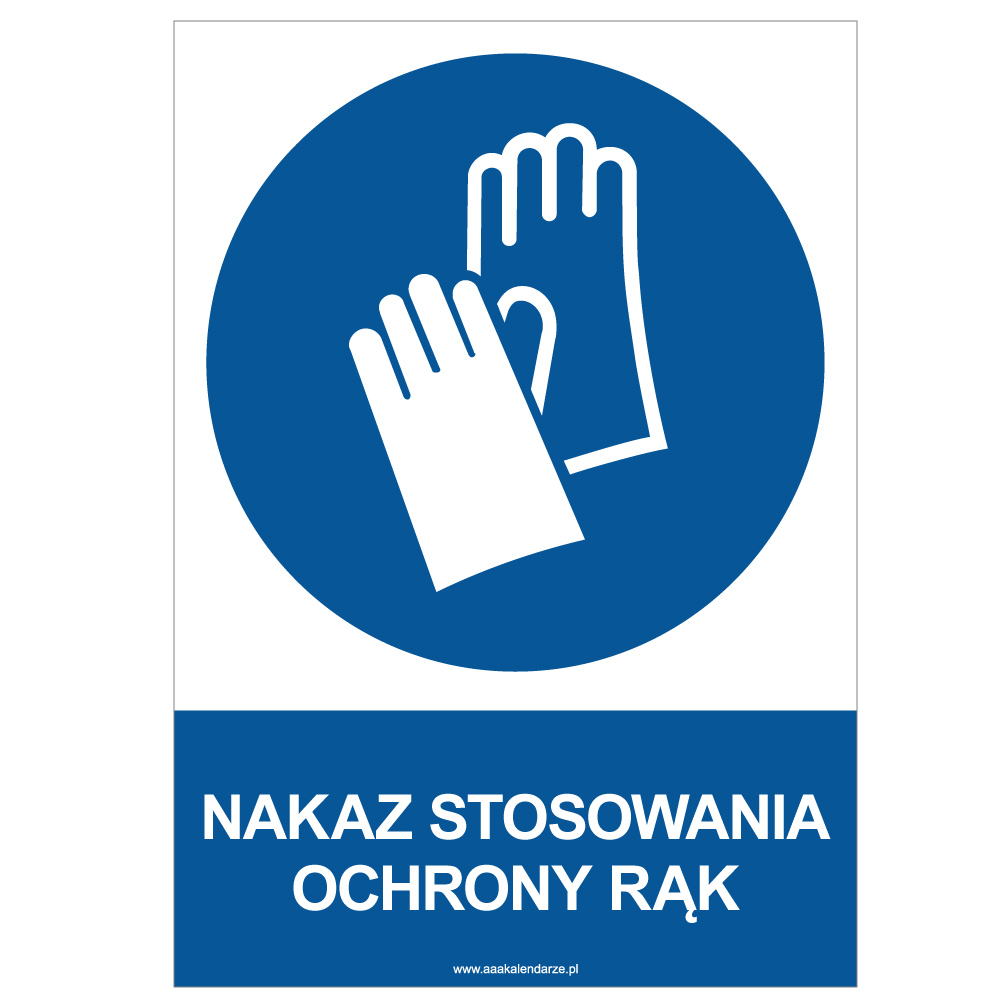 NAKAZ STOSOWANIA OCHRONY RĄK - znak BHP, płyta PVC A4, 2 mm