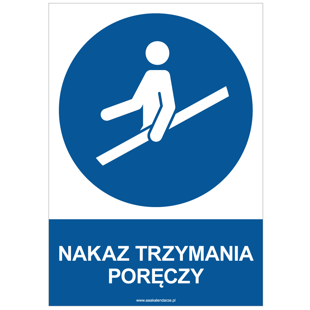 NAKAZ TRZYMANIA PORĘCZY - znak BHP, naklejka A4