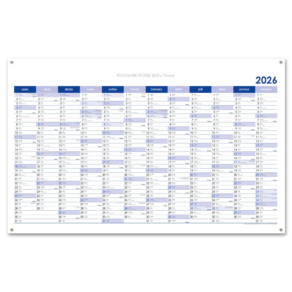 Nástenná plánovacia mapa 2026 CZ s očkami na zavesenie - 100 x 63 cm - modrá