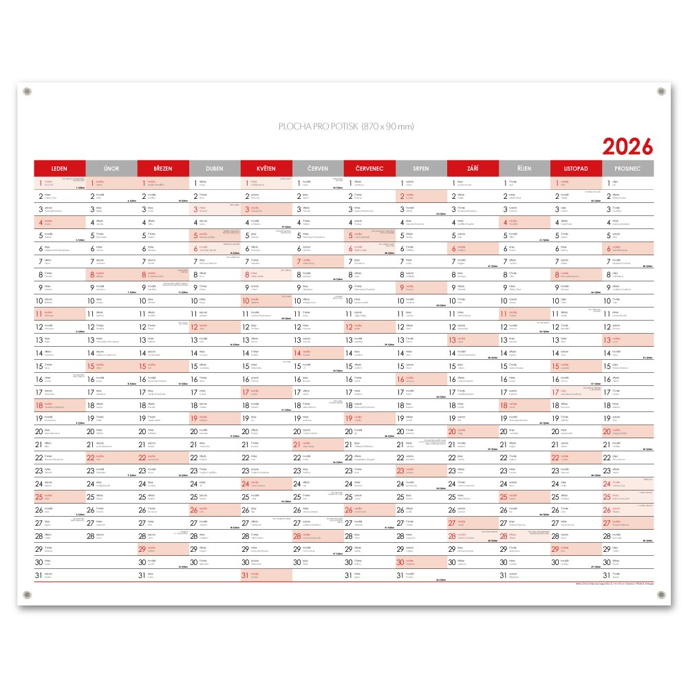 Nástenná plánovacia mapa 2026 CZ s očkami na zavesenie - 100 x 80 cm - červená