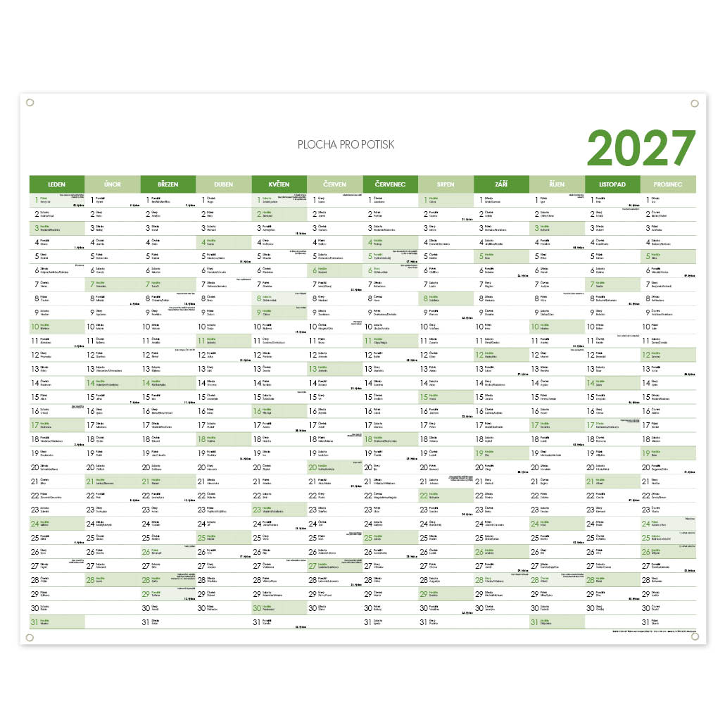 Nástenná plánovacia mapa 2027 CZ s očkami na zavesenie - 124 x 100 cm - zelená
