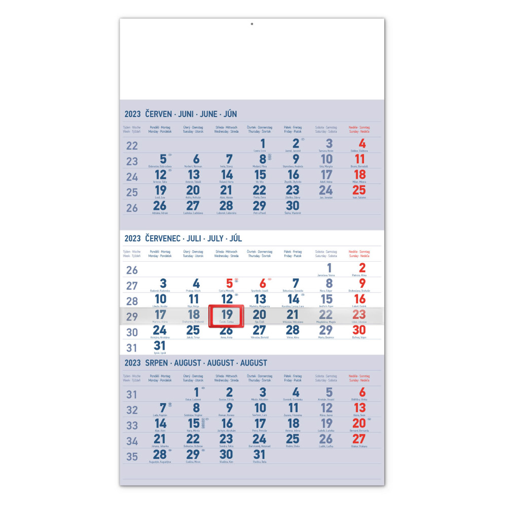 Nástenný kalendár 2023 3mesačný standard - modrý CZ