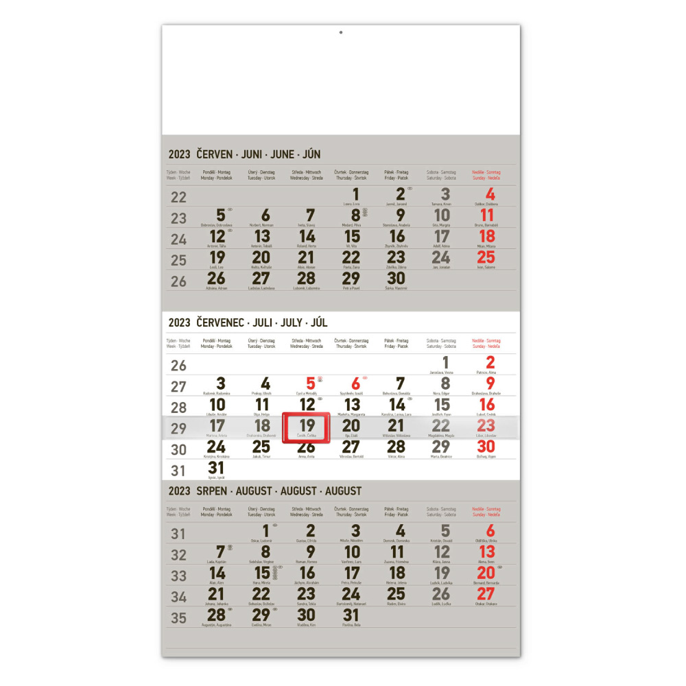 Nástenný kalendár 2023 3mesačný standard - sivý CZ