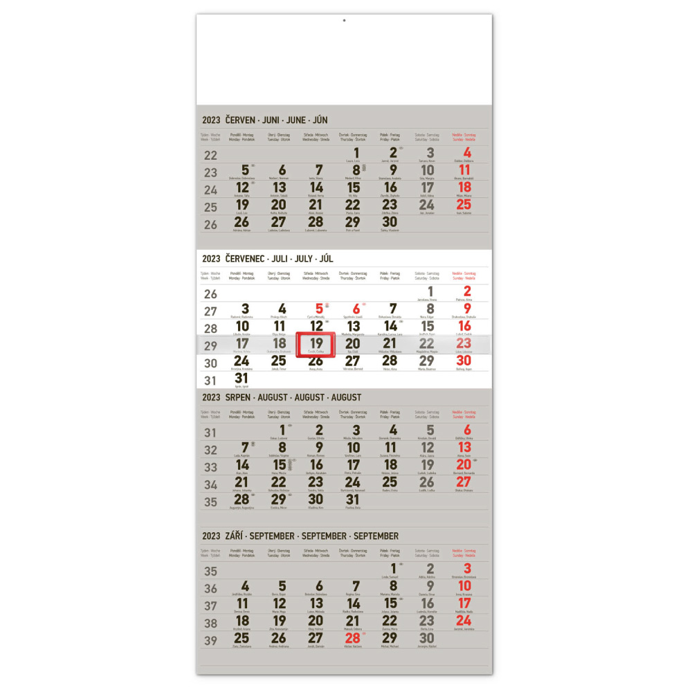 Nástenný kalendár 2023 4-mesačný štandard - sivý CZ