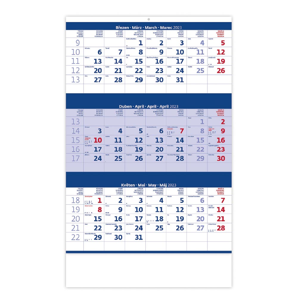 Nástenný kalendár 2023 - Trojmesačný modrý