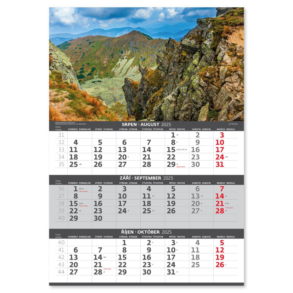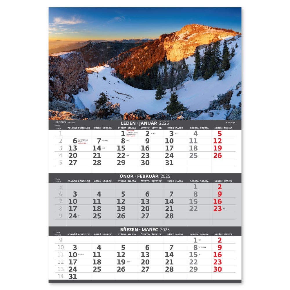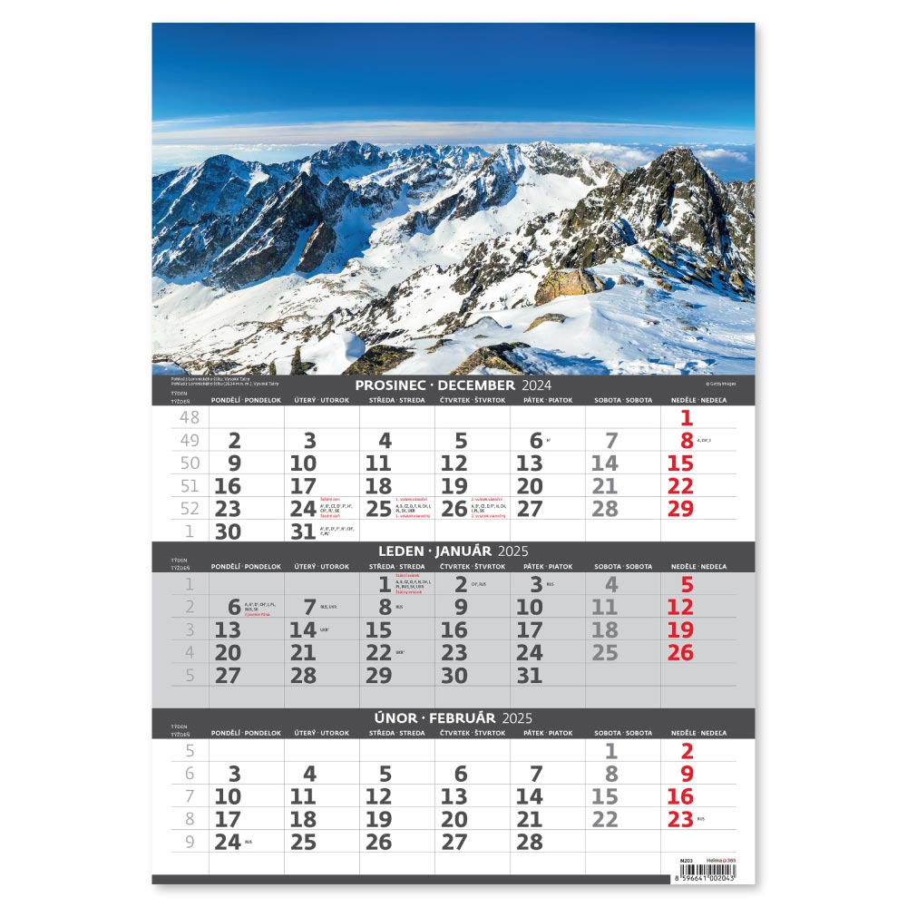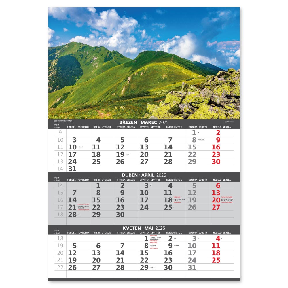 Nástenný kalendár 2025 - Hory - Trojmesačný