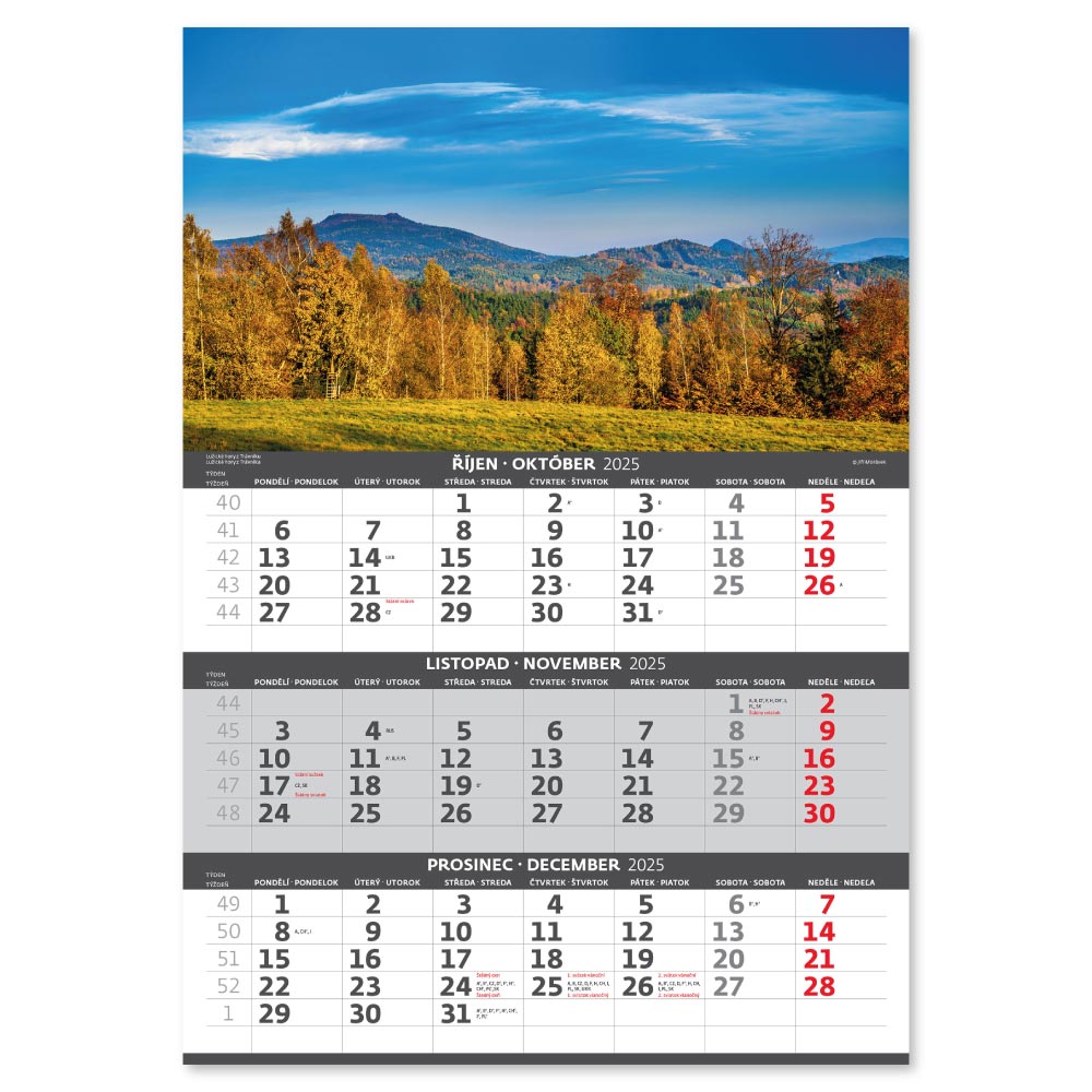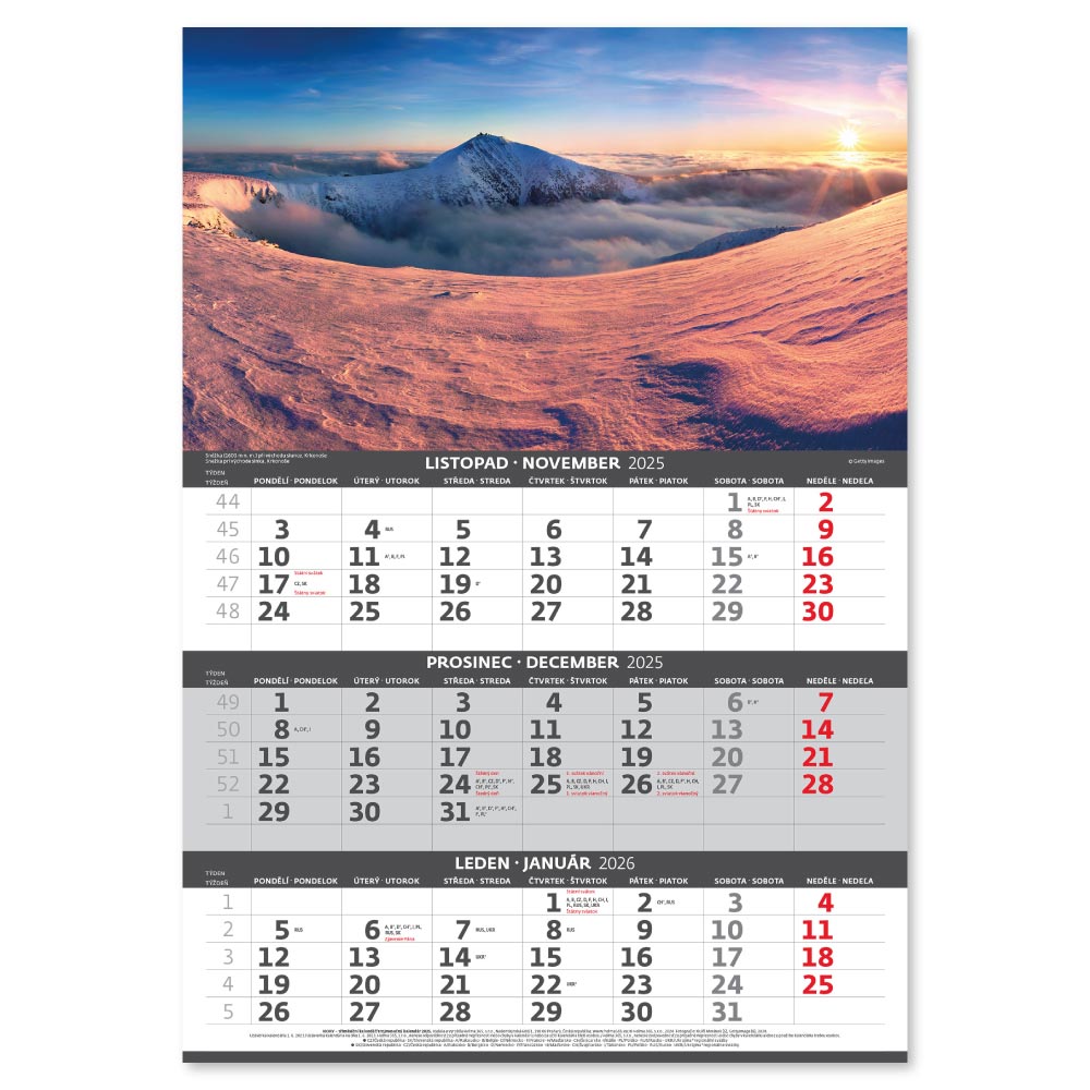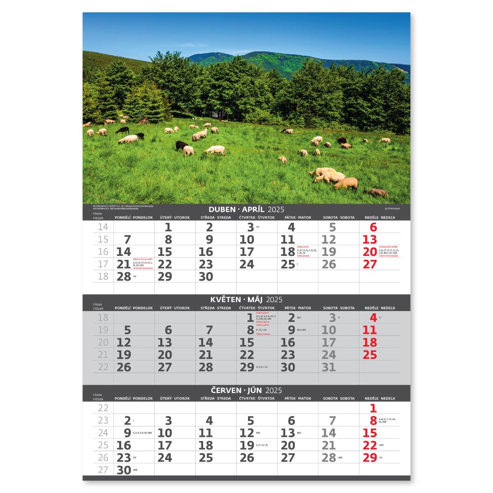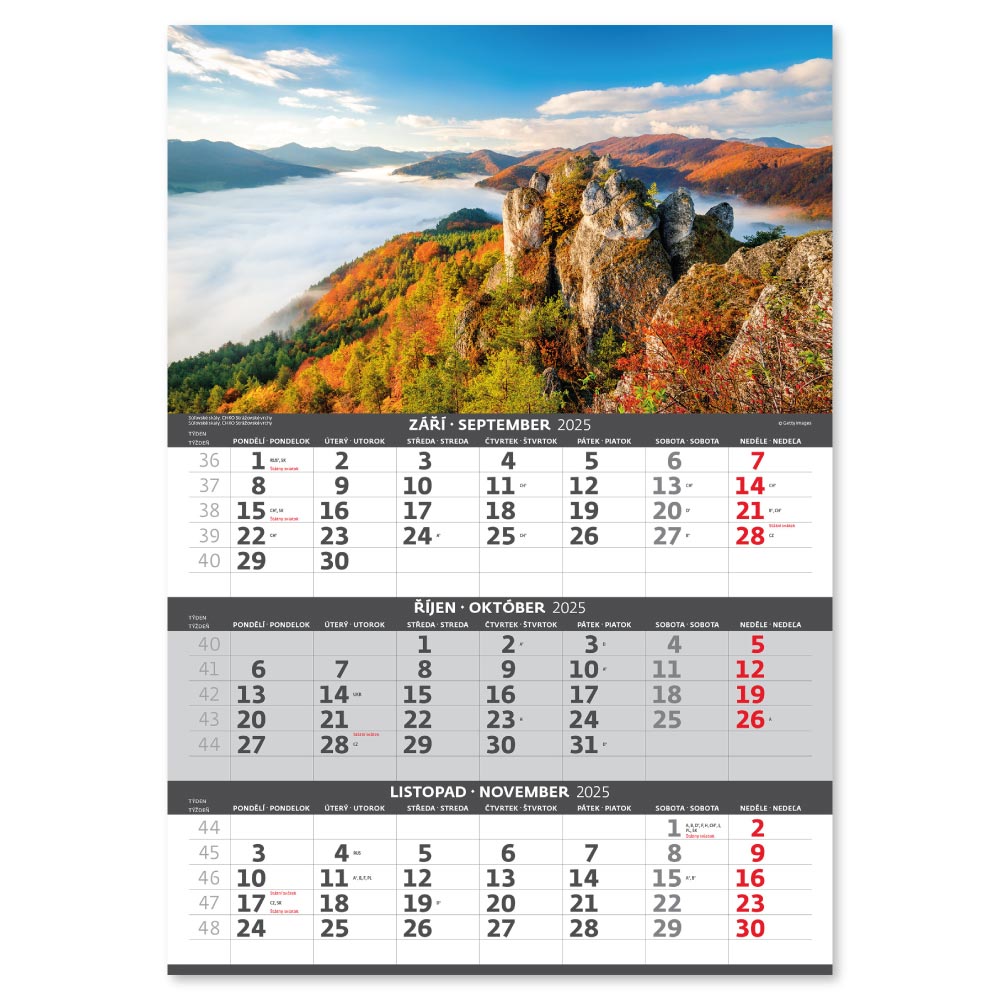 Nástenný kalendár 2025 - Hory - Trojmesačný