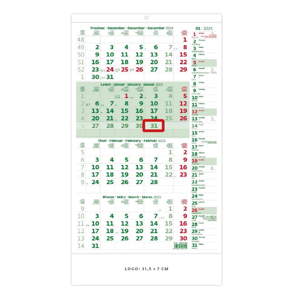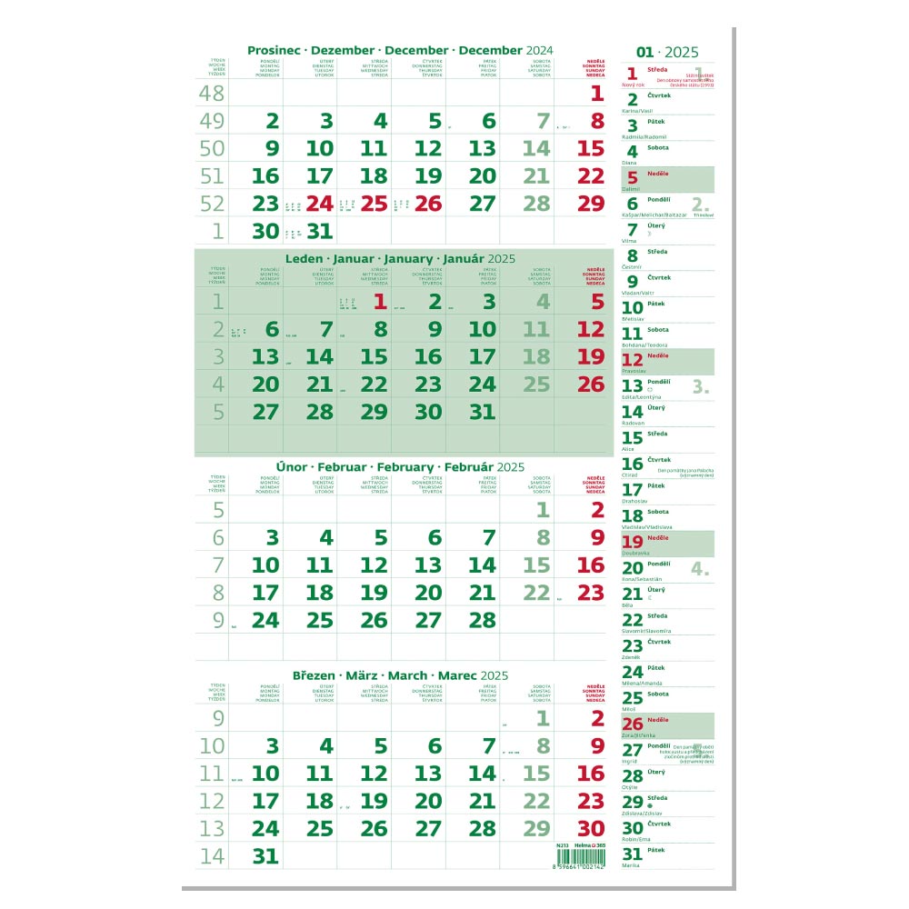Nástenný kalendár 2025 - Štvormesačný zelený