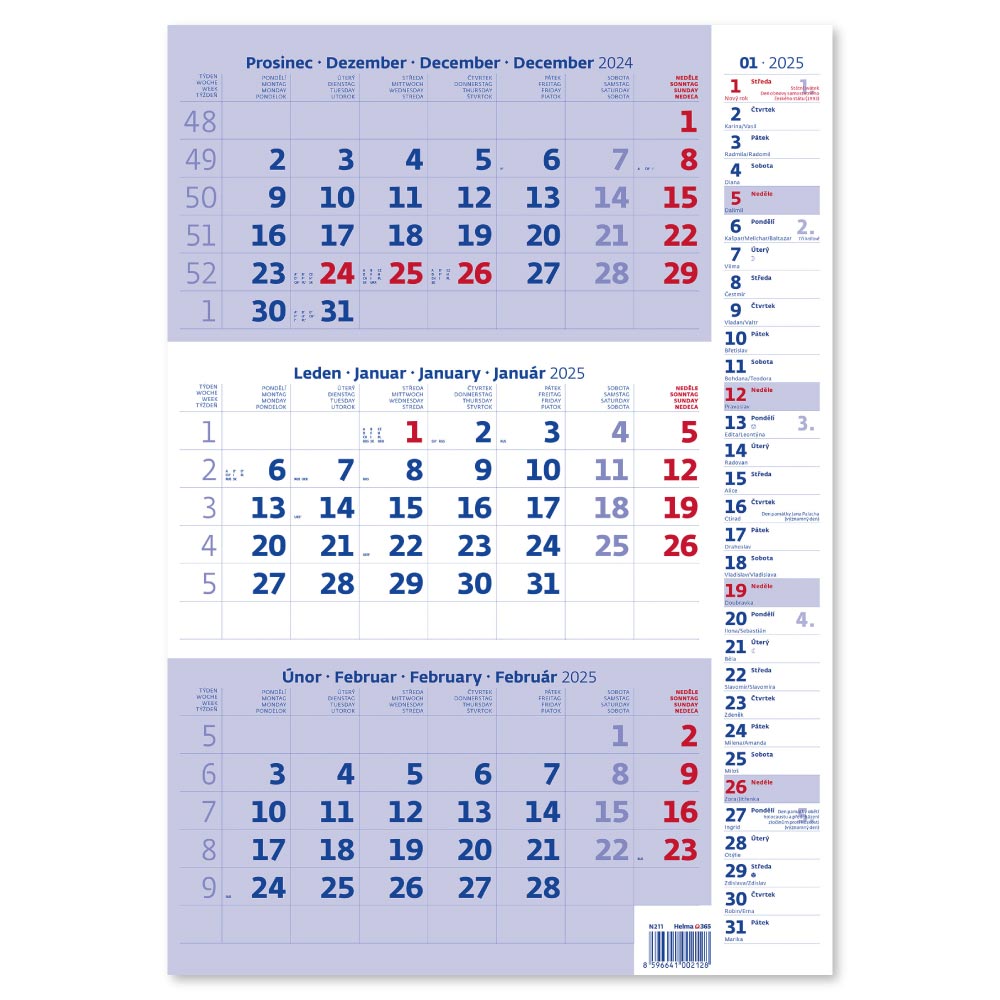 Nástenný kalendár 2025 - Trojmesačný modrý s poznámkami
