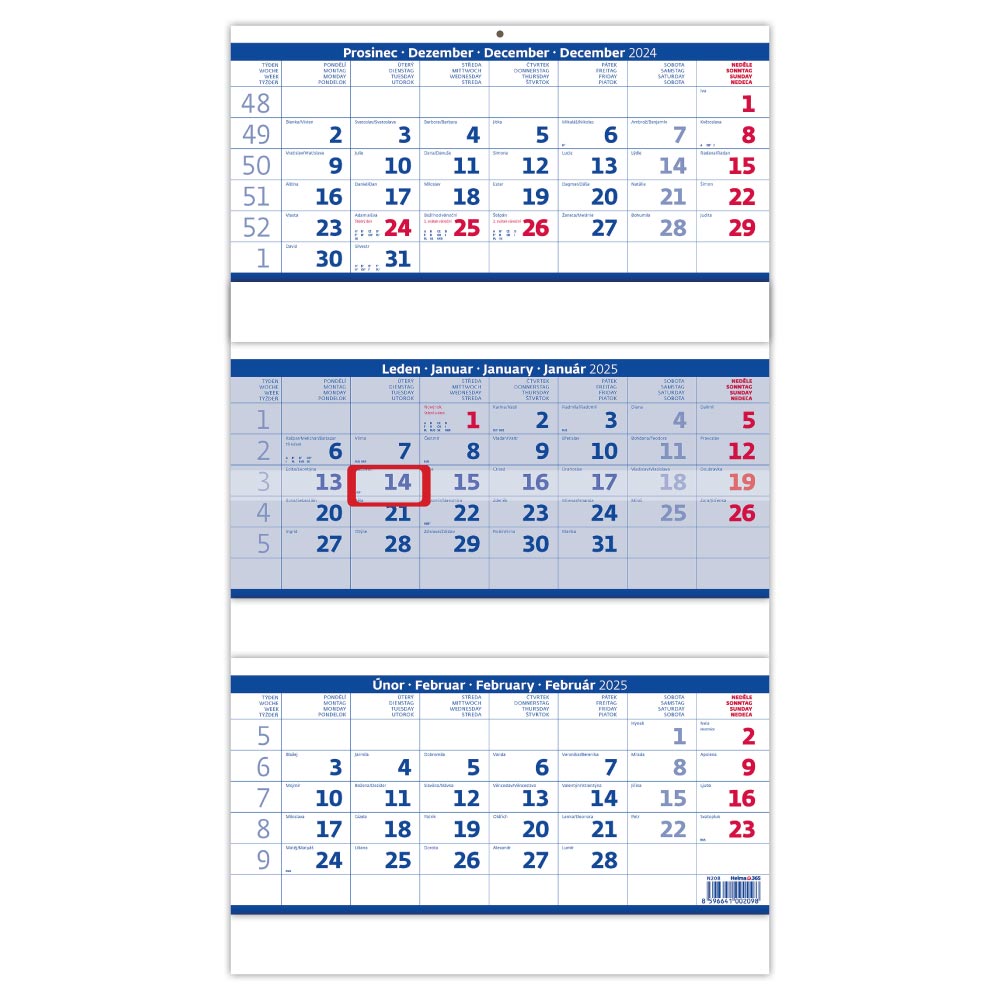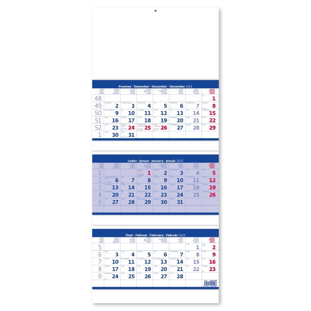 Nástenný kalendár 2025 - Trojmesačný skladaný modrý
