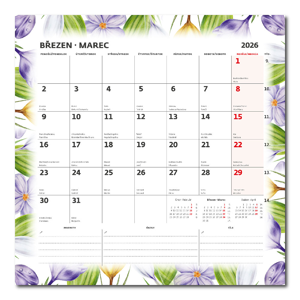 Kalendárium: české/slovenské menné mesačné