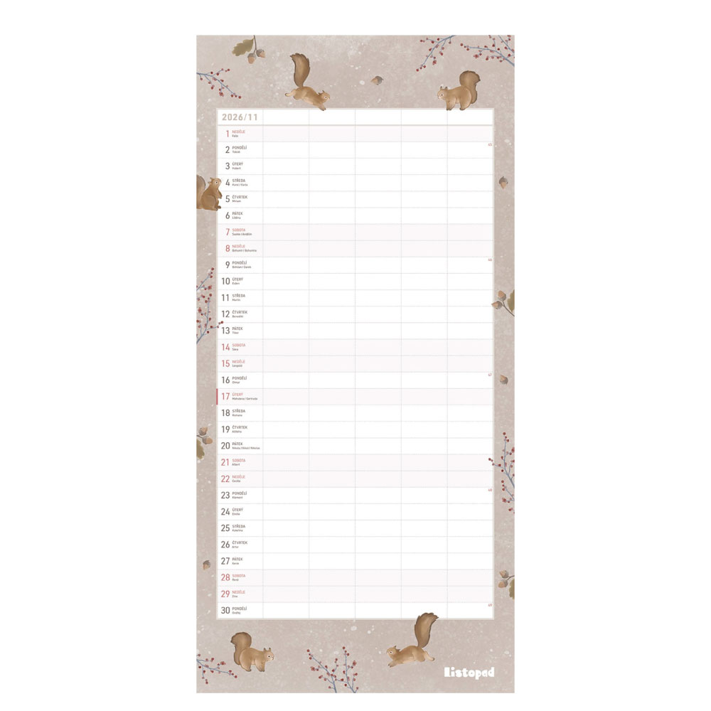 Nástenný kalendár 2026 - Rodinný plánovač Les
