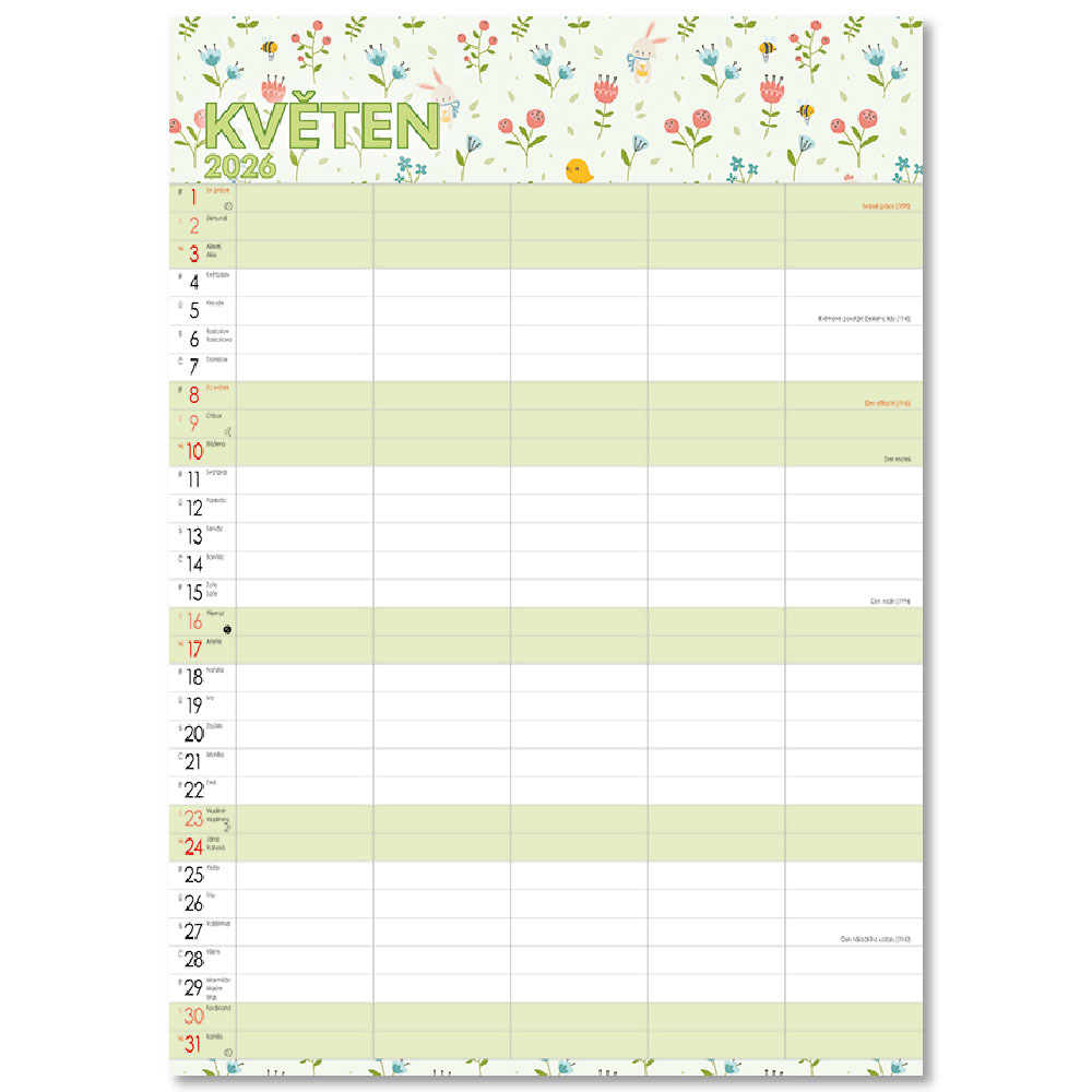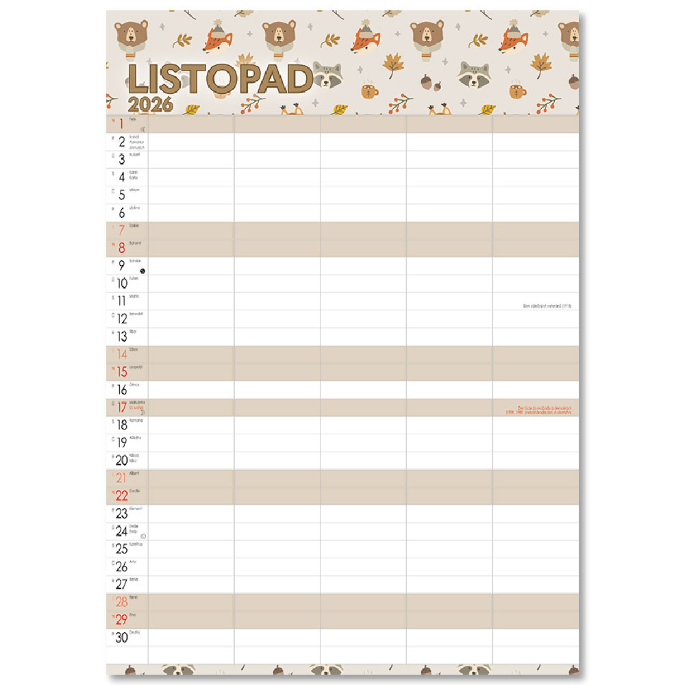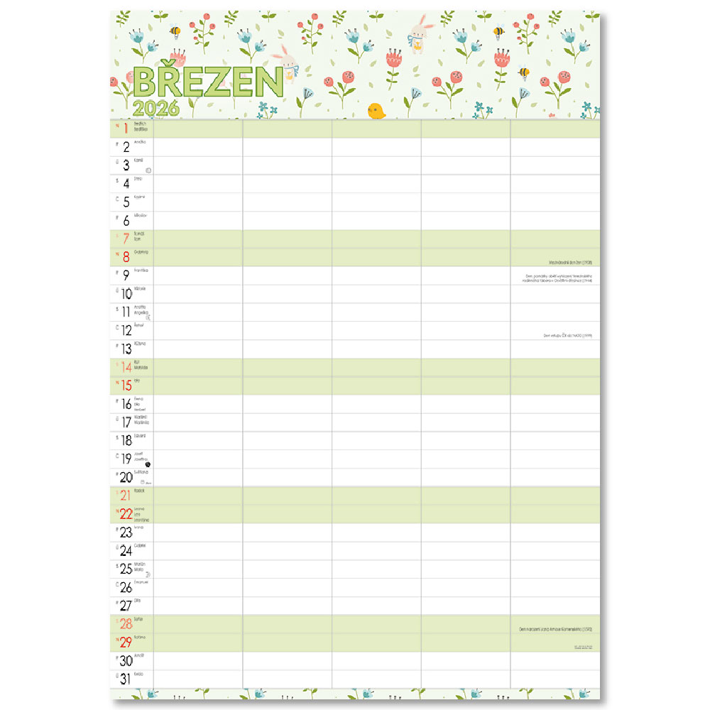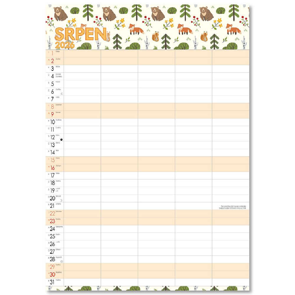 Obsahuje: poznámkové, menné kalendárium so štátnymi sviatkami,