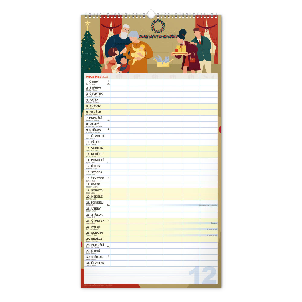 Nástenný kalendár 2026 Rodinný plánovací XXL