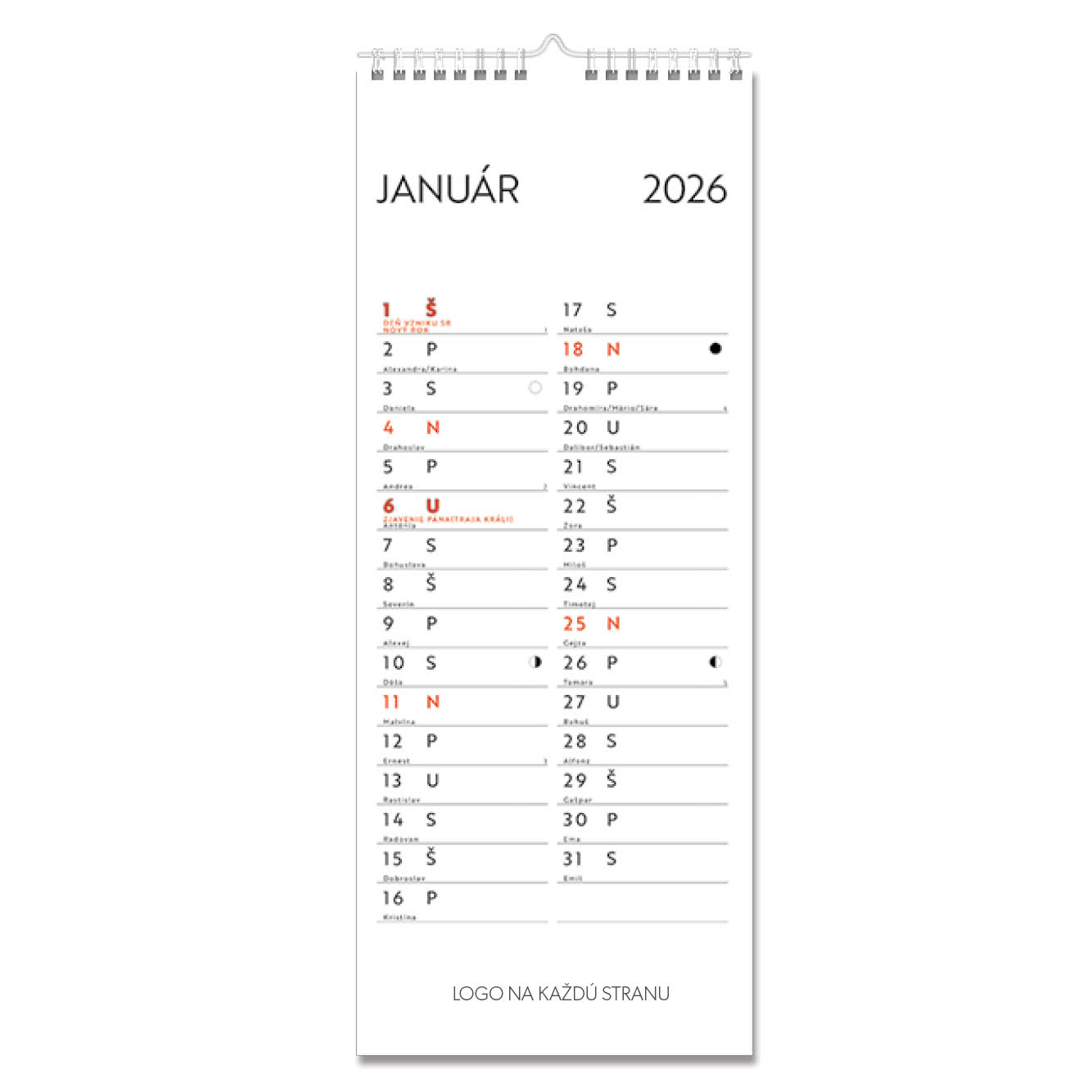 Možnosť potlače loga na každú stránku nástenného kalendára ZDARMA (logo zdarma od 50 ks)."