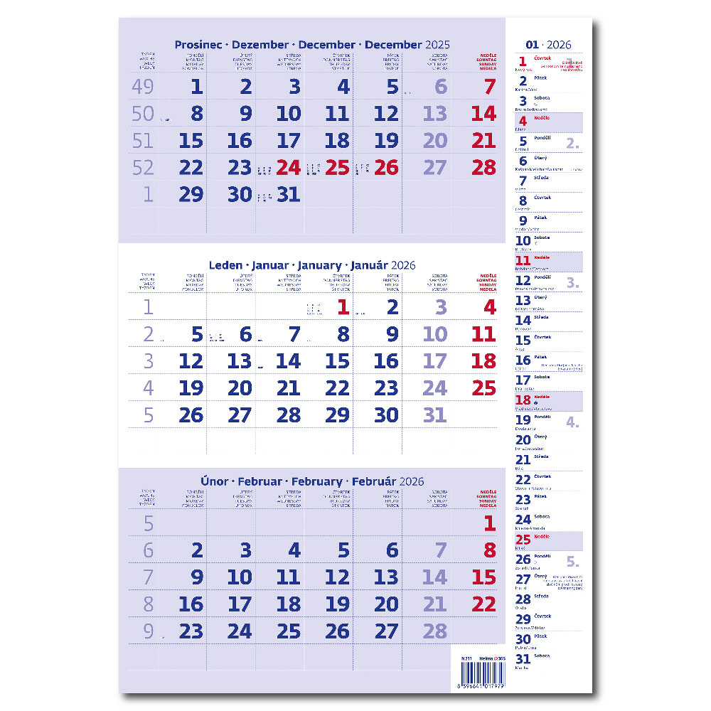 Kalendárium: CZ 3-mesačné menné so sviatkami vybraných európskych štátov (CZ/SK/A/B/D/F/H/CH/I/PL/RUS/UKR)