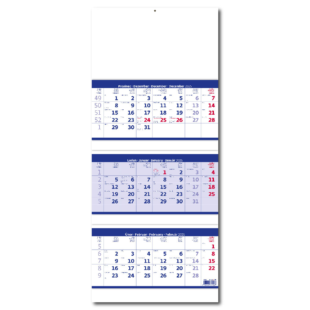 Nástenný kalendár 2026 - Trojmesačný skladaný modrý