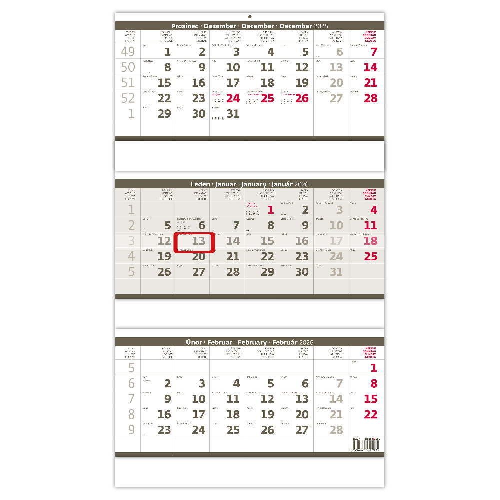 Nástenný kalendár 2026 - Trojmesačný skladaný šedý