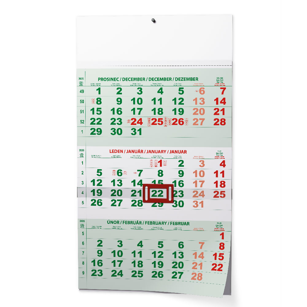 Nástenný kalendár 2026 Trojmesačný - zelený