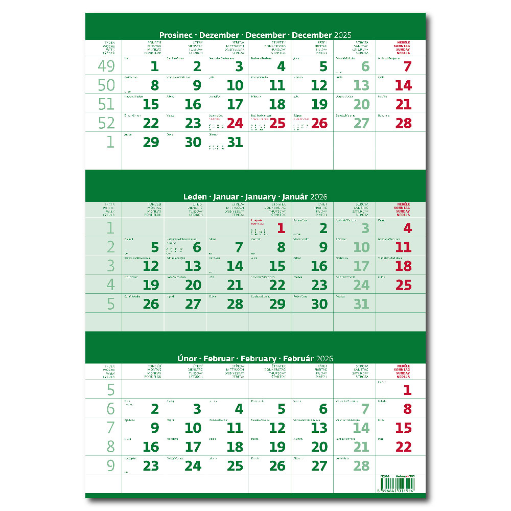 Nástenný kalendár 2026 - Trojmesačný zelený