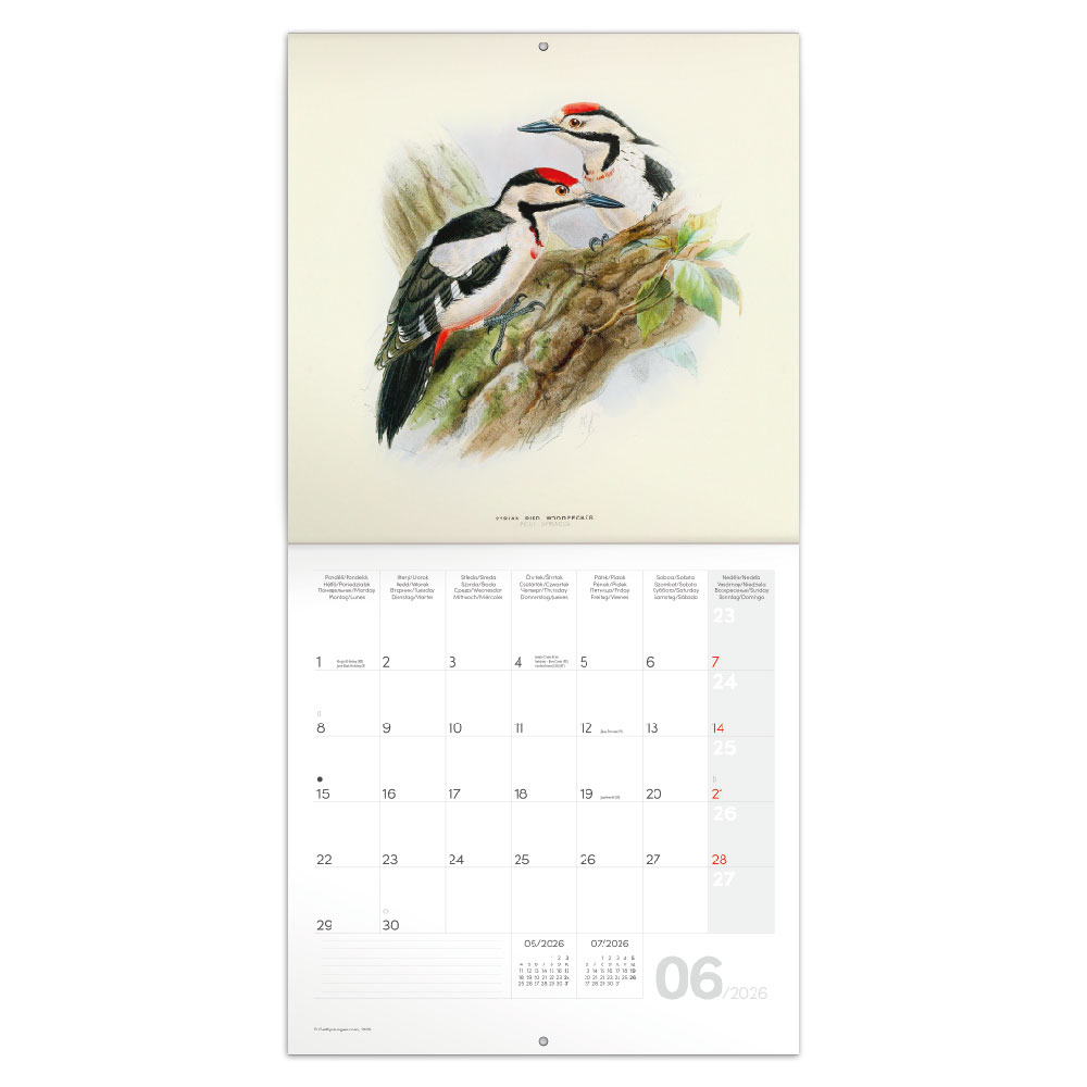 Nástenný poznámkový kalendár 2026 Vtáčiky