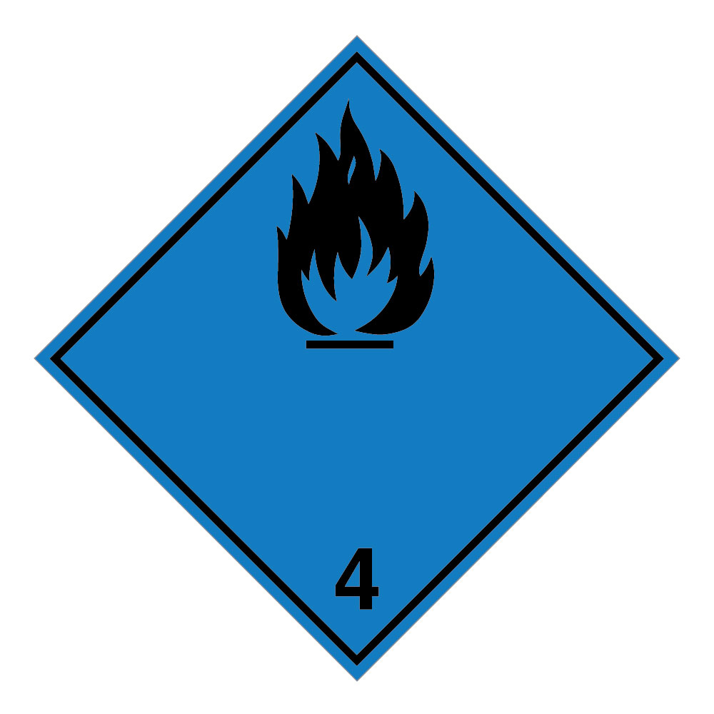 Nebezpečenstvo vytvorenia horľavého plynu pri styku s vodou č.4 čierny symbol, plast 1 mm,100x100 mm