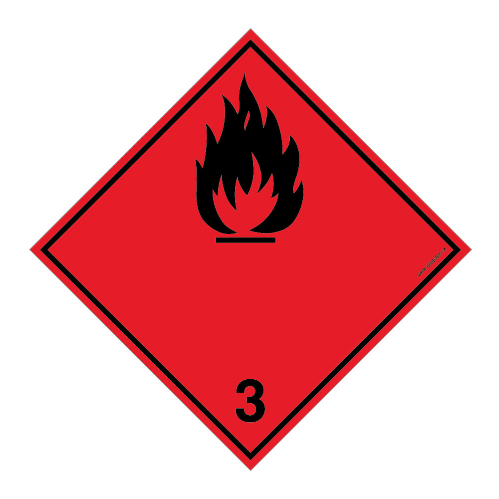 NEBEZPEČÍ POŽÁRU - HOŘLAVÉ KAPALINY Č.3 ČERNÝ SYMBOL, plast 1 mm 100x100 mm