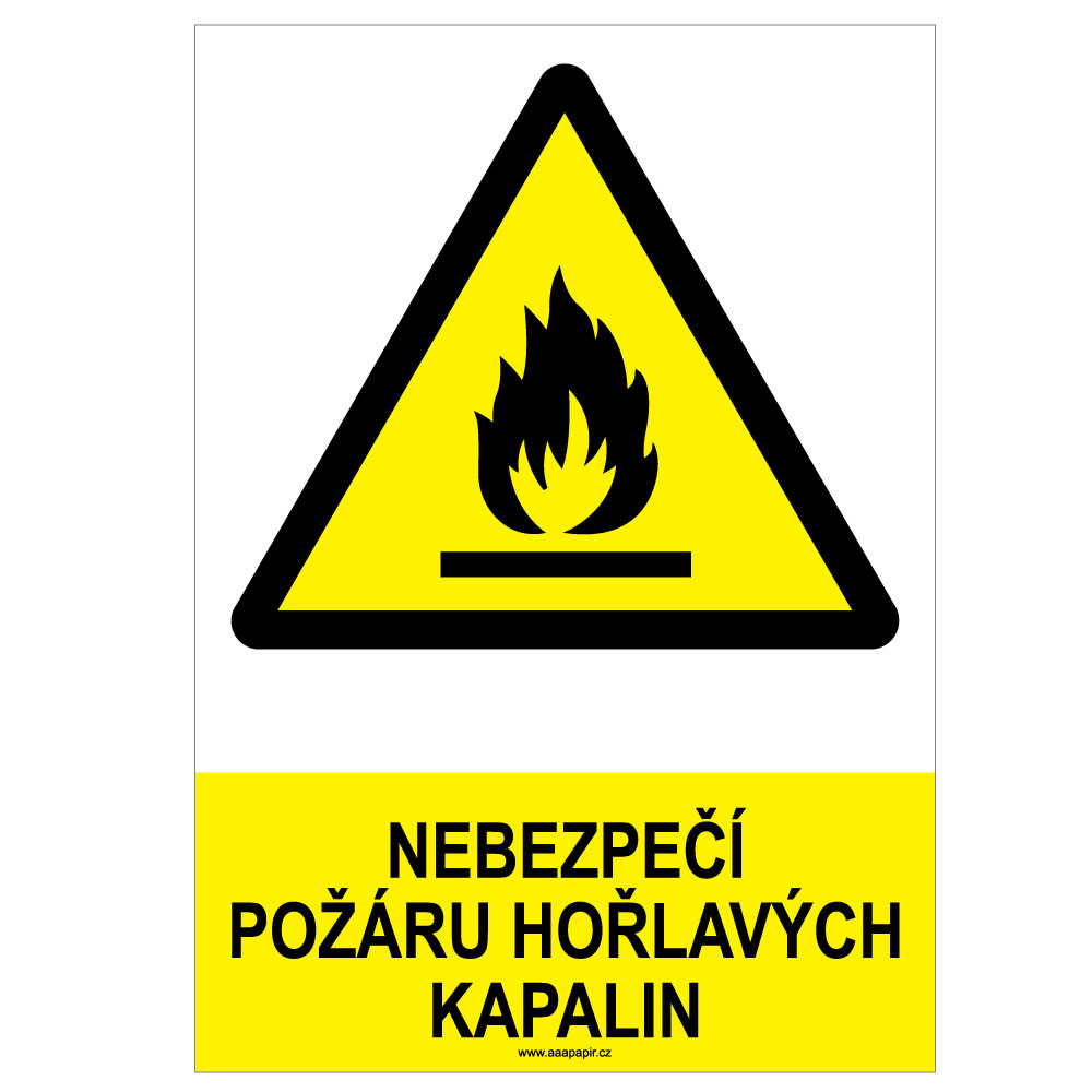 NEBEZPEČÍ POŽÁRU HOŘLAVÝCH KAPALIN - bezpečnostní tabulka, plast A4, 0,5 mm