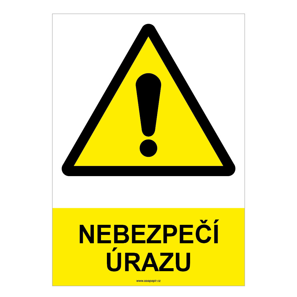NEBEZPEČÍ ÚRAZU - bezpečnostní tabulka, plast A4, 2 mm