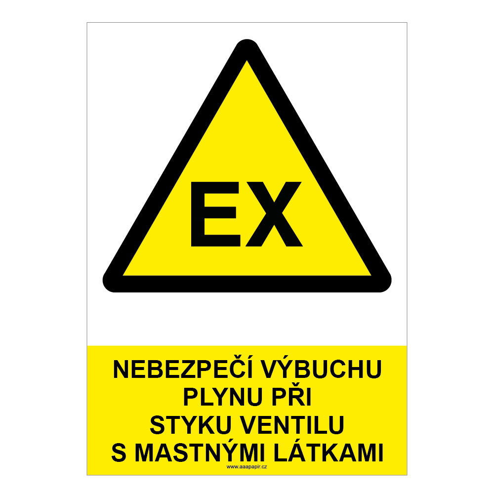 NEBEZPEČÍ VÝBUCHU PLYNU PŘI STYKU VENTILU S MASTNÝMI LÁTKAMI - bezpečnostní tabulka, plast A4, 0,5 mm