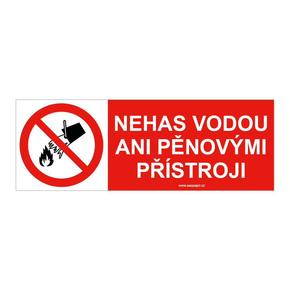 NEHAS VODOU ANI PĚNOVÝMI PŘÍSTROJI!, plast 1 mm 105x37 mm