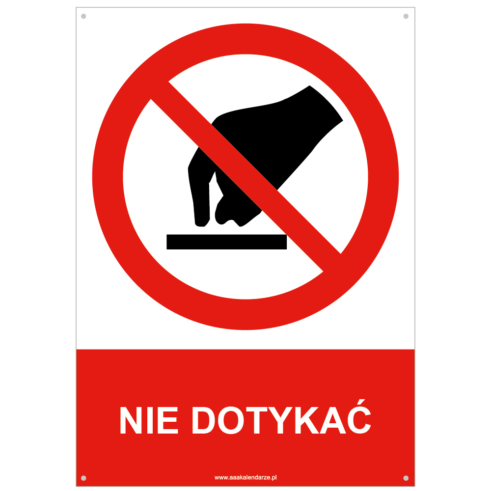 NIE DOTYKAĆ - znak BHP z dziurkami, płyta PVC A5, 2 mm