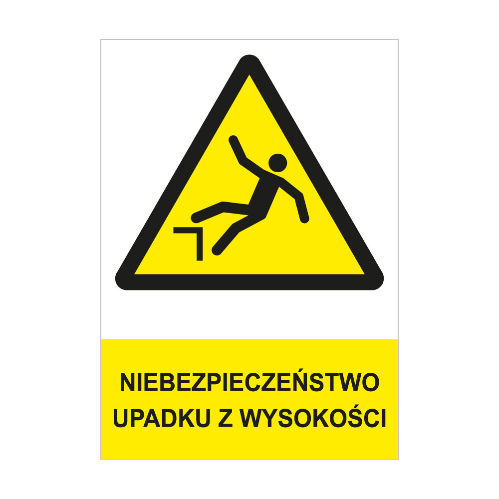 NIEBEZPIECZEŃSTWO UPADKU Z WYSOKOŚCI - znak BHP, płyta PVC A4, 0,5 mm