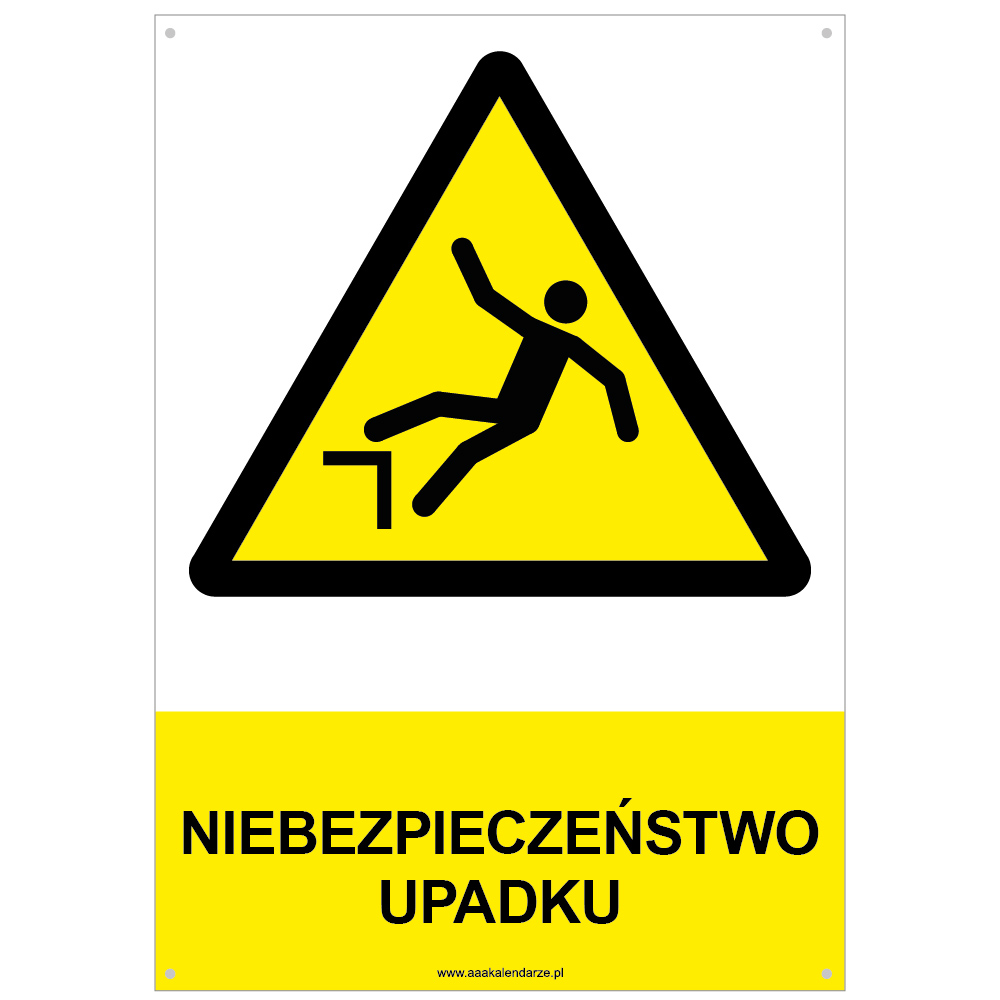 NIEBEZPIECZEŃSTWO UPADKU - znak BHP z dziurkami, płyta PVC A4, 2 mm