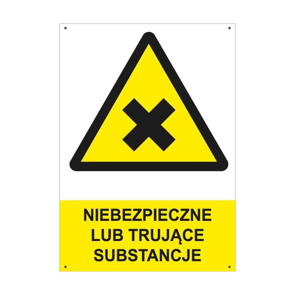 NIEBEZPIECZNE LUB TRUJĄCE SUBSTANCJE - znak BHP z dziurkami, płyta PVC A4, 2 mm
