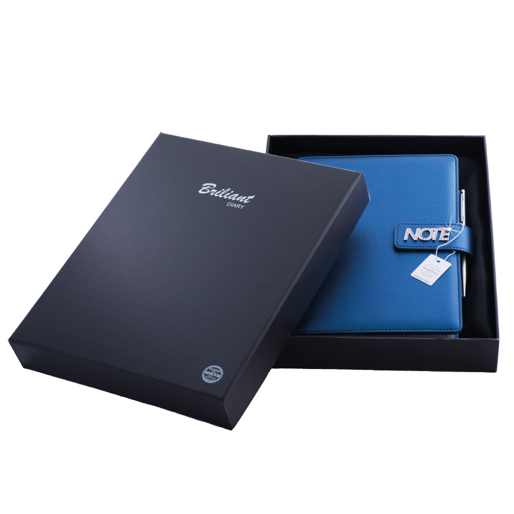 Notes je balený v darčekovej krabičke vystlanej saténom.