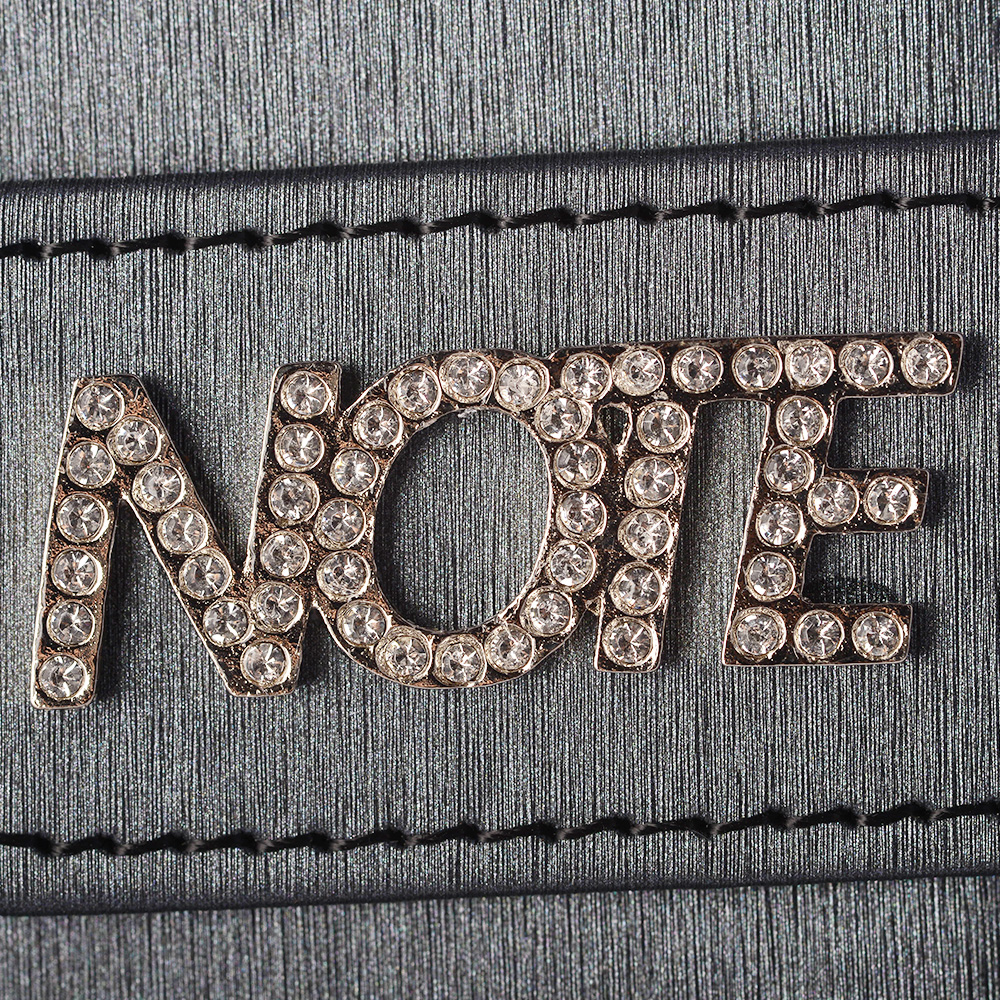 Šperk Note je vyrobený z niklu a v ňom sú vsadené kryštáliky.