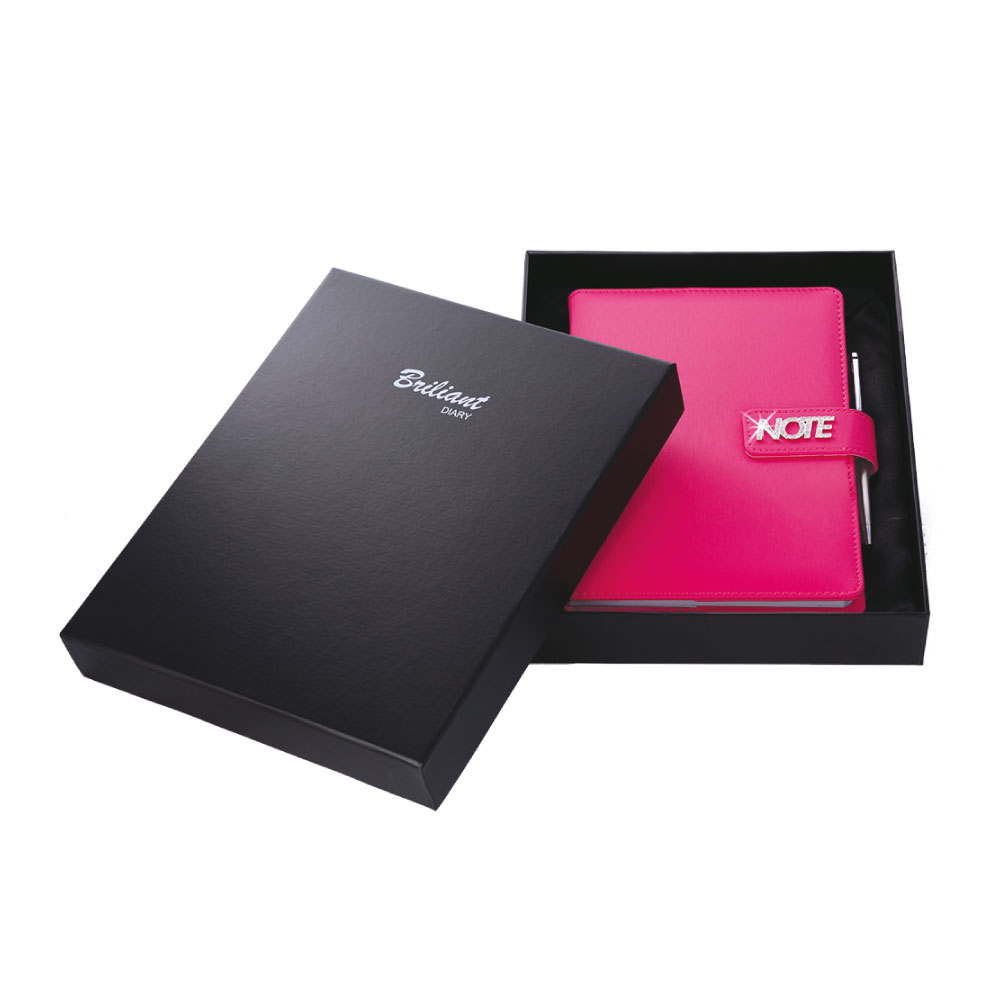 Notes je balený v darčekovej krabičke vystlanej saténom.