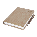 Formát: A5 Rozmer: 243 x 205 mm Poťahový materiál: koženka s imitáciou dreva Farba bloku: biela Záložka: biela Papier: bodkovaný s perforáciou Počet strán: 144 Väzba: šitá V8 (tkaná niť) Súčasťou notesa je pero.