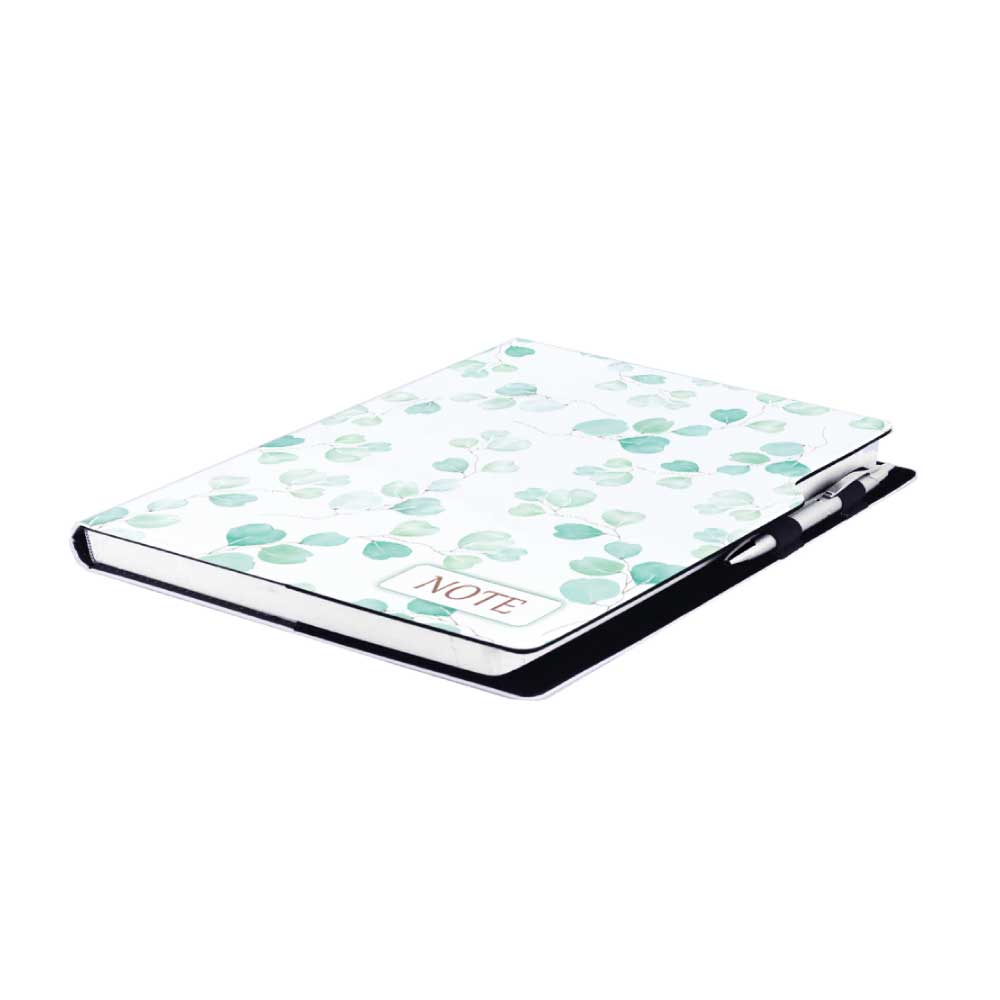 Súčasťou notesu je pútko pre pero a kovová propiska.