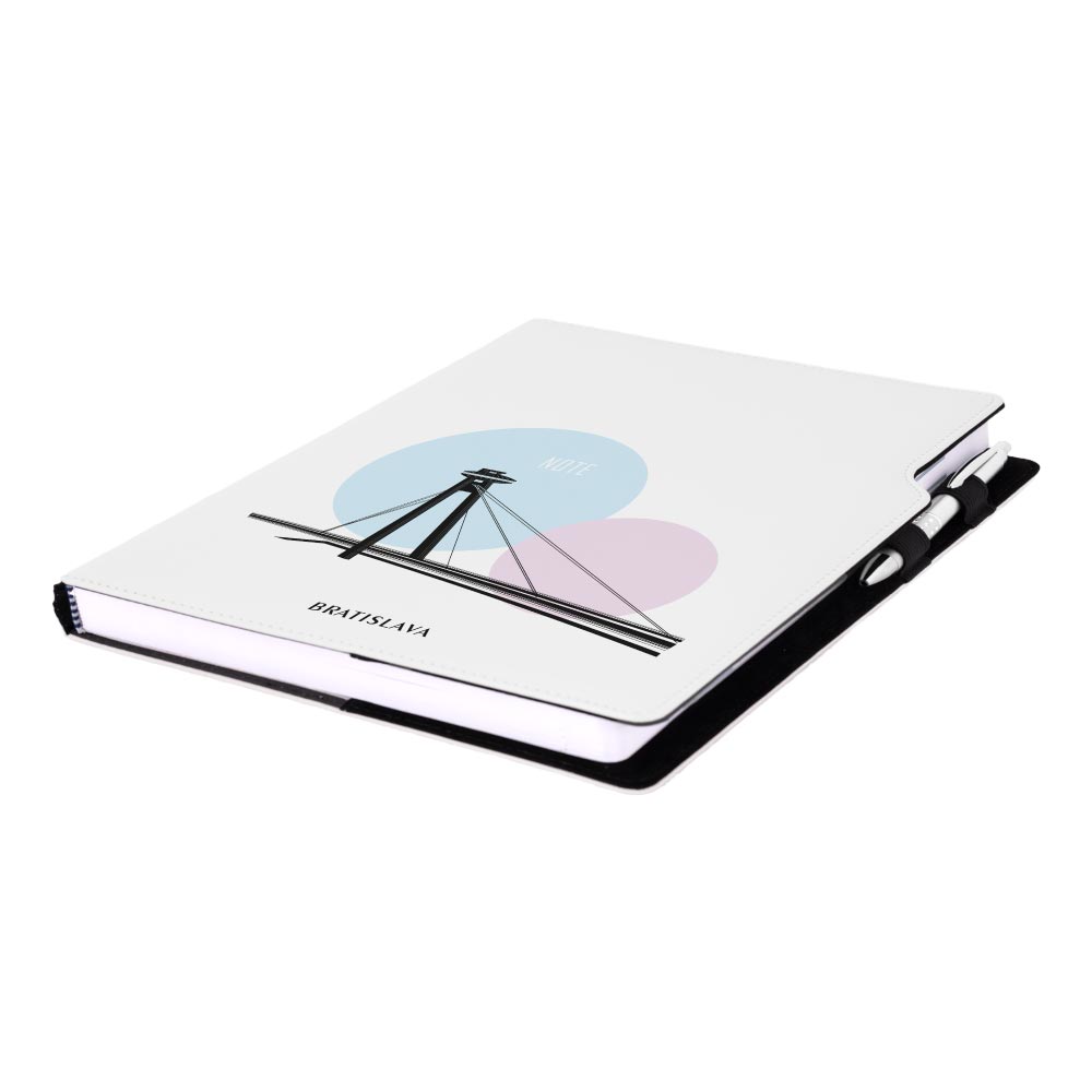 Súčasťou notesu je pútko pre pero a kovová propiska.